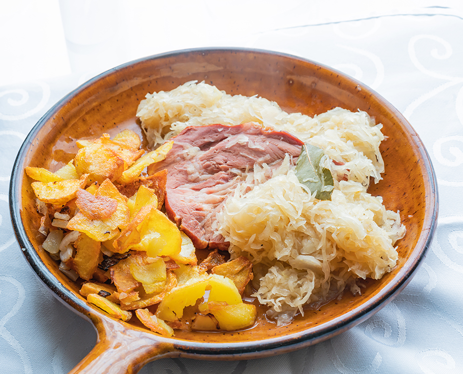 - Crauti stufati - Cavolo fermentato cotto lentamente con vino bianco, cumino e alloro. Accompagnano perfettamente stinco, Würstel e arrosti.