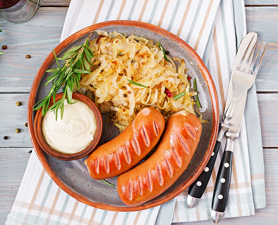 I würstel con crauti sono un piatto perfetto da gustare nei rifugi di montagna, nei mercatini di Natale o nelle birrerie. Questo piatto combina la sapidità dei würstel affumicati con l’acidità dei crauti fermentati, spesso accompagnati da senape, rafano e pane di segale.