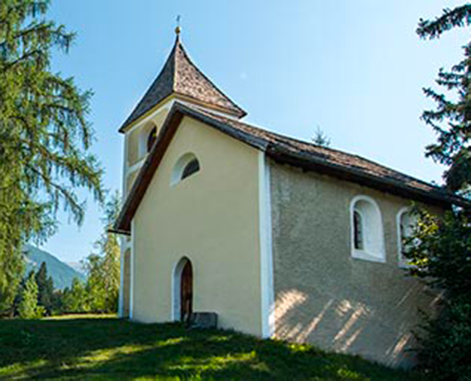 Bereits in Urkunden aus dem Jahr 1309 erwähnt, zeigt sich die Kirche St. Margaretha mit einem einzigen Kirchenschiff und einer Besonderheit: Der Altar befindet sich im Glockenturm. An der Außenmauer ist eine Darstellung des hl. Christophorus zu sehen – Schutzpatron gegen Unwetter. Im Inneren befindet sich ein beeindruckendes spätgotisches Triptychon aus dem Jahr 1500 mit den Figuren der hl. Margaretha, hl. Magdalena und hl. Katharina. Der Triumphbogen bewahrt ein seltenes Wandgemälde der Vierzehn Nothelfer, angerufen um Heilung und Schutz.