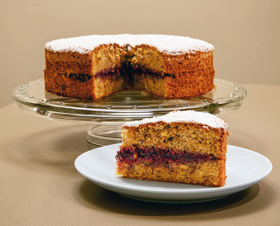Ein rustikaler und zugleich feiner Kuchen, gebacken mit Buchweizenmehl und Mandeln, gefüllt mit Preiselbeer-Konfitüre. Perfekt zu einer Tasse Tee oder heißer Schokolade.