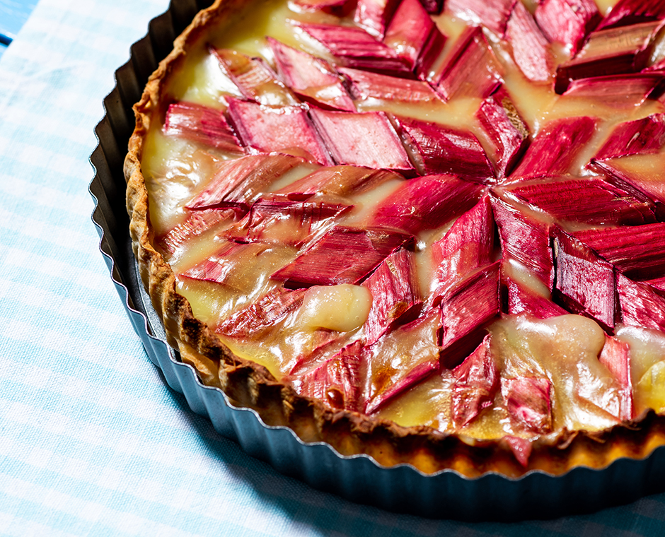 Mit seiner leicht säuerlichen Note vereint dieser Kuchen die Süße des Teigs mit der Frische des Rhabarbers – eine Zutat, die in der alpinen Küche häufig Verwendung findet.