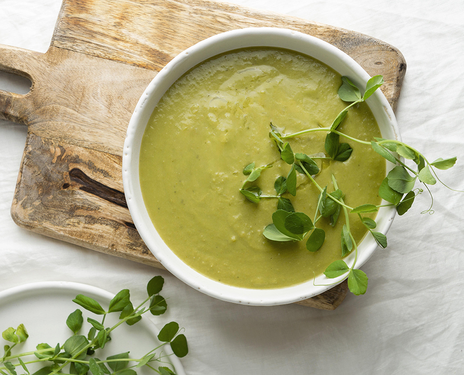 Eine feine grüne Suppe aus frischer Brunnenkresse, Schalotten, Sahne und Fleischbrühe. Mit knusprigen Croûtons serviert, ist sie ideal für ein leichtes und nahrhaftes Essen.