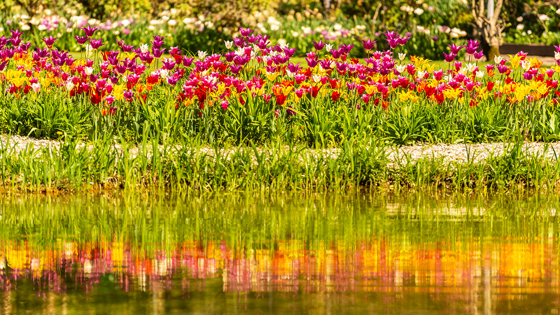 Terrassen, Treppen und kleine Wasserläufe führen dich zum romantischen Seerosenteich, vorbei an einem eleganten italienischen Garten, einem englischen Garten und einem üppigen Palmenhain. Ein Ort der Ruhe, wo Wasser und Blüten in Harmonie verschmelzen.