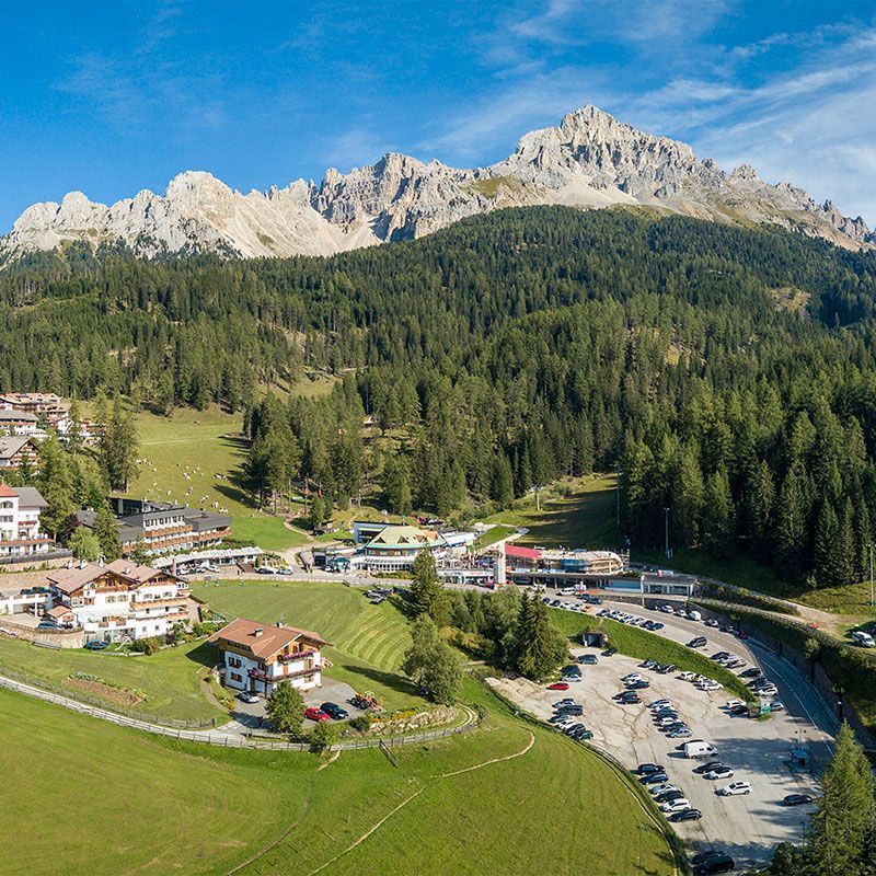 Im Frühling verwandeln sich die Skipisten in grüne Almwiesen, durchzogen von Lärchen- und Fichtenwäldern, mit Blick auf die majestätischen Latemar-Gipfel, die zum UNESCO-Welterbe zählen. Die Aufstiegsanlagen sind auch im Sommer geöffnet und führen zu spektakulären Aussichtspunkten und zahlreichen Wanderwegen durch Wiesen und Wälder.
