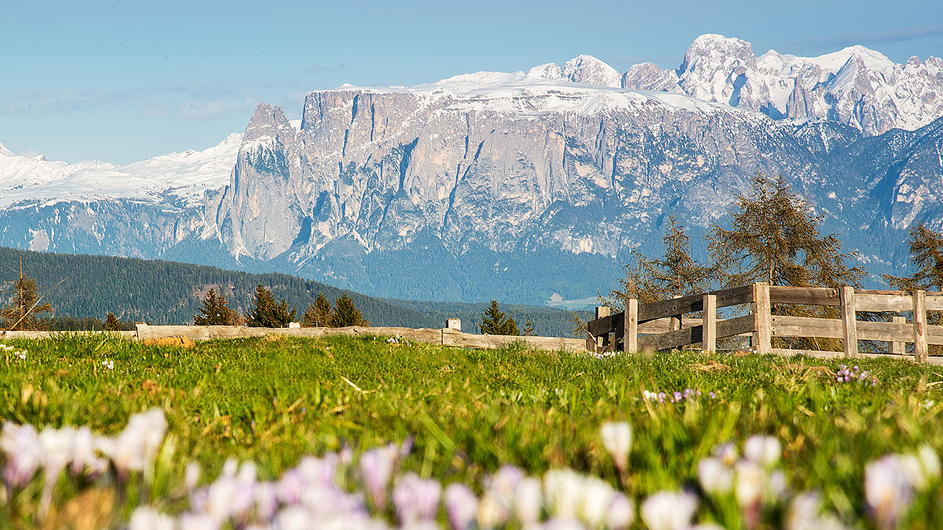 Lo Sciliar si erge imponente sull’Alpe di Siusi, la più vasta distesa d’alta quota d’Europa, accessibile sia dall’Alpe che dalla Val di Tires. Questo grande pianoro, delimitato dai Denti di Terrarossa a sud e dal Monte Petz a ovest, è uno dei luoghi più spettacolari delle Dolomiti.